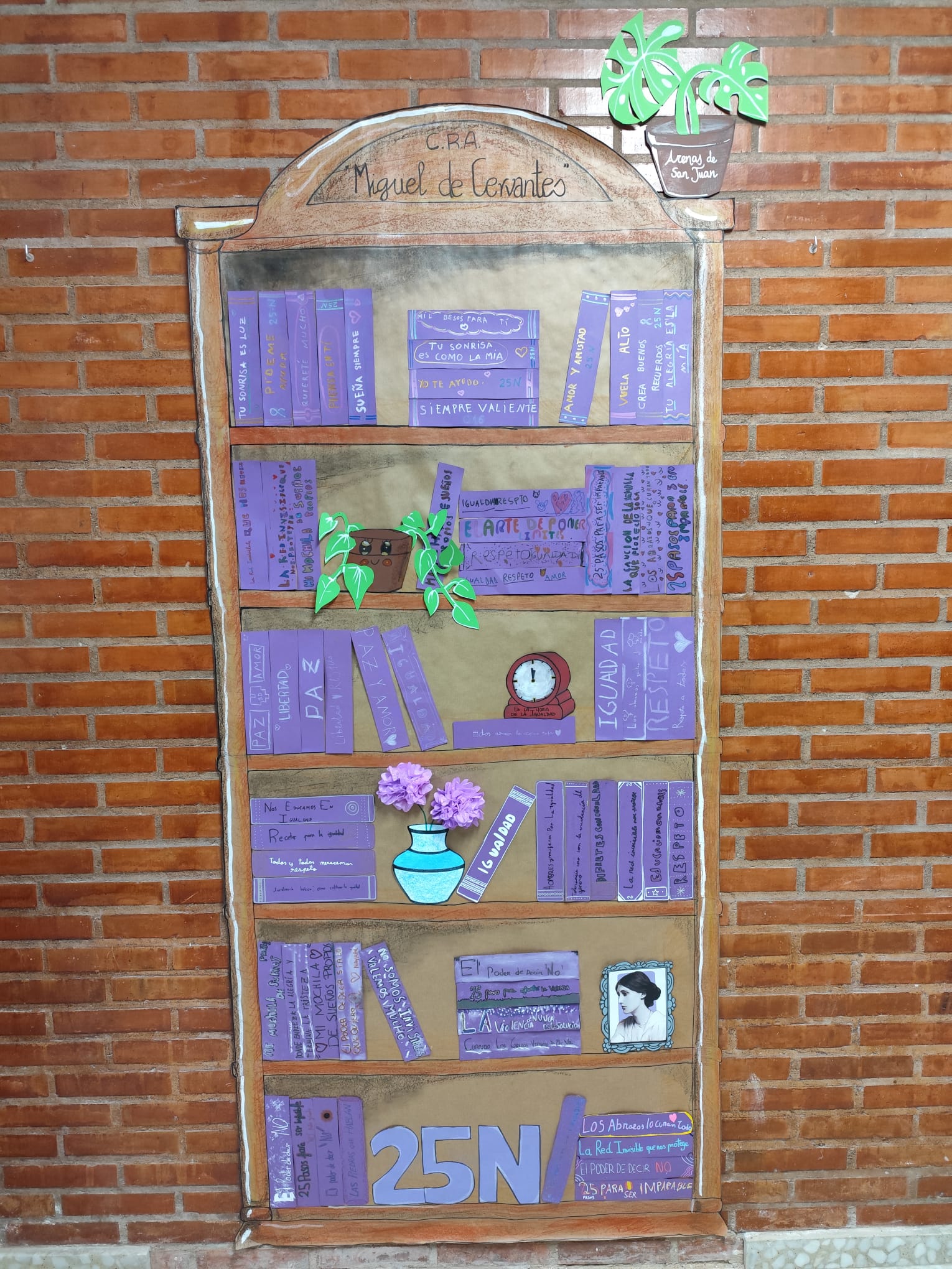 - Creación de muros en contra de la Violencia de Género en forma de estanterías, dado que vamos a participar en un concurso propuesto por la JCCM con el lema "Construyendo muros contra la Violencia de género: libros, cuentos y poesías".